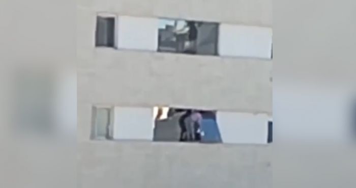 Episódio foi flagrado por um trabalhador que fazia a instalação de um ar-condicionado próximo ao edifício