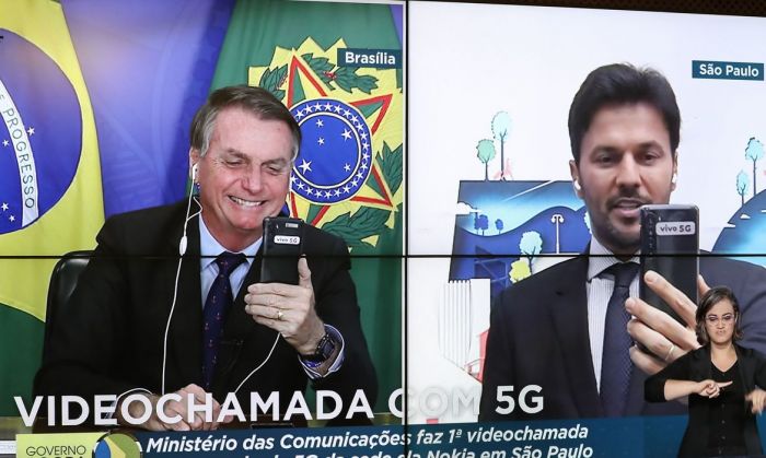 O presidente Jair Bolsonaro recebeu hoje (9) a primeira videochamada da América Latina utilizando a tecnologia 5G. Foto: Agência Brasil O presidente Jair Bolsonaro recebeu hoje (9) a primeira videochamada da América Latina utilizando a tecnologia 5G standalone de conectividade móvel - o 5G puro, com rede independente e de maior qualidade. A ligação para o Palácio do Planalto, em Brasília, foi feita pelo ministro das Comunicações, Fábio Faria, da sede da Nokia, em São Paulo.