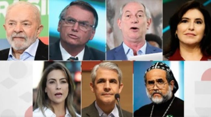Participam Ciro Gomes (PDT), Jair Bolsonaro (PL), Lula (PT), Felipe D’Ávila (NOVO), Simone Tebet (MDB), Soraya Thronicke (União Brasil) e Padre Kelmon (PTB).