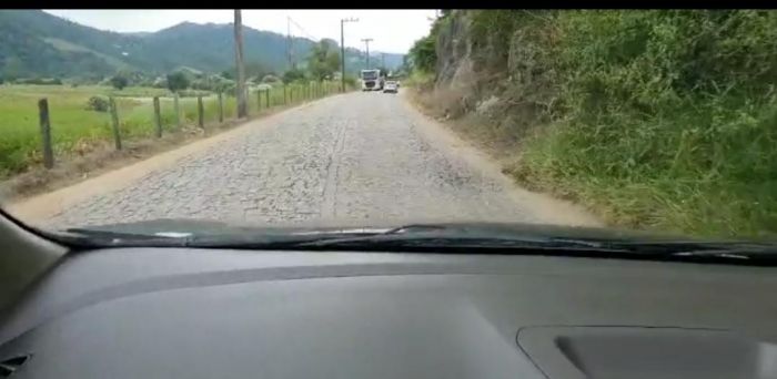 A estrada de paralelepípedos é o acesso principal da cidade e são apenas 1,4 km sem asfalto. Foto: Divulgação A estrada que dá acesso ao município de Pedras Grandes é uma obra de responsabilidade do Governo do Estado e que a alguns anos está sem pavimentação asfáltica. A reivindicação do prefeito Agnaldo Filippi (Progressistas) é antiga, antes mesmo de pensar em ser candidato a prefeito. "É um caminho aonde passam muitos veículos em direção a Serra do Rio do Rastro. É uma obra emergencial e o Governo do Estado precisa pavimentar porque o fluxo de veículos, principalmente carretas já danificou a estrada e é preciso pavimentar", ressalta o Prefeito.