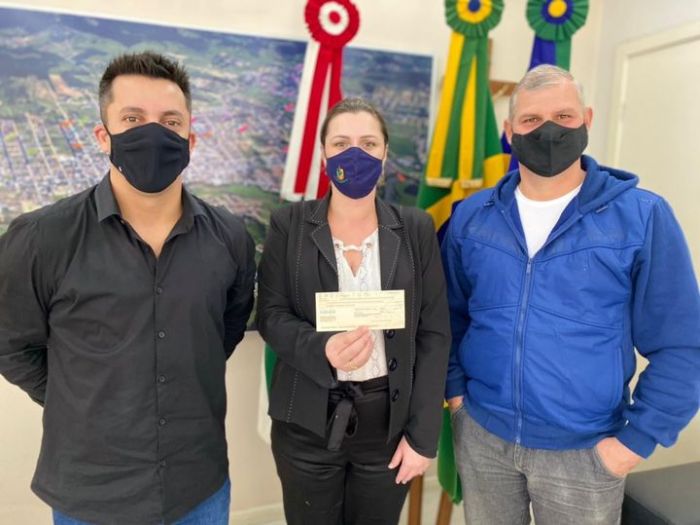 A pedido da presidente, uma parte será reservada para auxiliar na construção de uma infraestrutura para telecomunicações dos órgãos de segurança pública do Município. Foto: Divulgação O prefeito de Braço do Norte, Beto Kuerten Marcelino, e o vice-prefeito, Ronaldo Fornazza, receberam ontem das mãos da presidente da Câmara de Vereadores, Nívea Willemann Rocha, um cheque de R$ 500 mil referentes à devolução de recursos provenientes de economias realizadas pela Casa Legislativa.