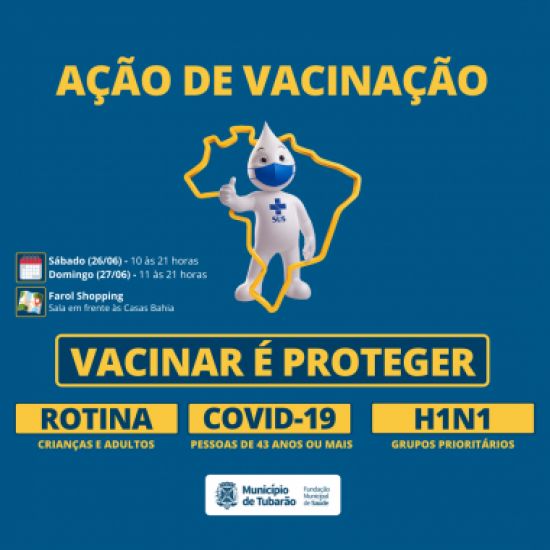 É importante ressaltar, que é de extrema importância que todas as pessoas que se enquadram nos grupos a serem vacinados busquem receber os imunizantes para maior proteção da população geral. A ação ‘Vacinar é Proteger’, da Fundação Municipal da Saúde (FMS) de Tubarão, visa imunizar os grupos prioritários das campanhas contra a Covid-19 e a Influenza (H1N1), além de atualizar a caderneta das crianças e dos adultos que não conseguem ir a uma Unidade Básica de Saúde (UBS) durante os dias de semana. A campanha acontecerá amanhã das 10 às 21 horas, e no domingo, das 11 às 21 horas, na sala em frente às Casas Bahia, localizada no Farol Shopping.