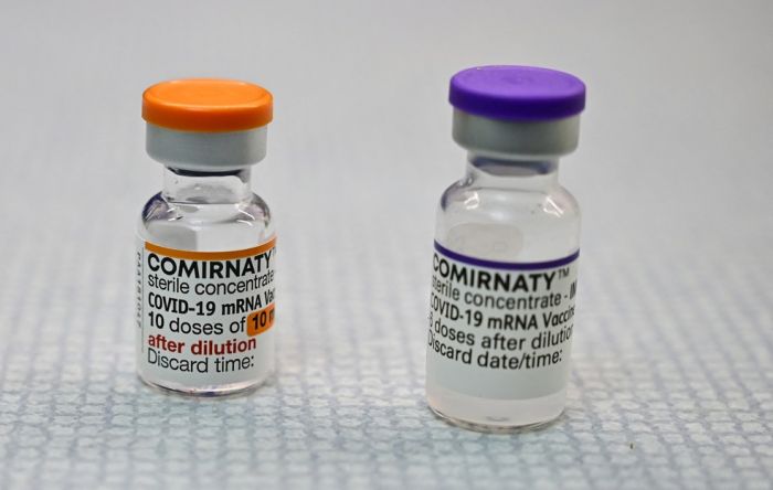 Frascos da vacina da Pfizer em versão pediátrica (laranja) e a partir dos 12 anos (roxa). Foto: Tobias Schwarz A área técnica da Agência Nacional de Vigilância Sanitária (Anvisa) autorizou nesta quinta-feira (16) a aplicação da vacina da Pfizer contra Covid-19 em crianças de 5 a 11 anos. Ainda não há previsão de quando a imunização vai começar, pois a dosagem para esse público será menor do que a utilizada por maiores de 12 anos e o Brasil ainda não tem essas doses ajustadas.