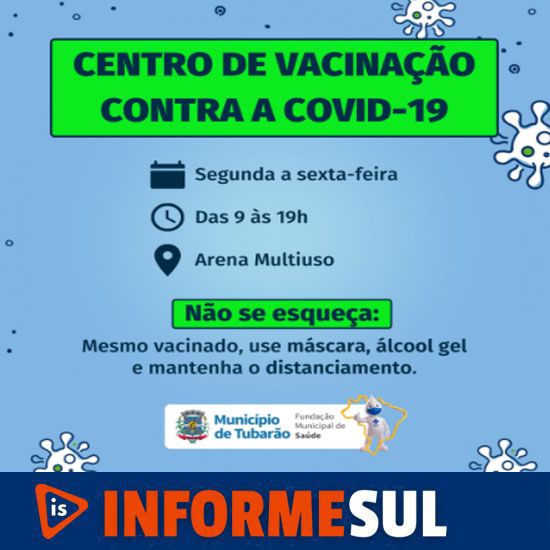 Vale lembrar, que a vacinação contra a Covid-19 continua na Arena Multiuso Prefeito Estêner Soratto da Silva, das 9 às 19 horas, de segunda a sexta-feira.