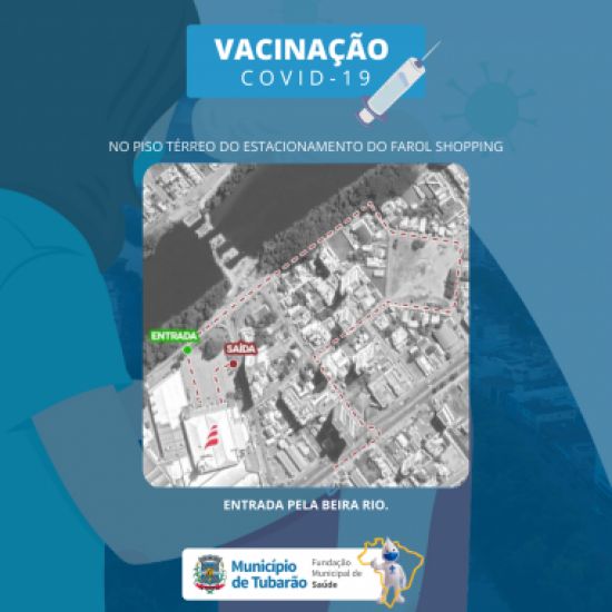 Para padronizar o sentido da fila, todos os motoristas devem chegar ao local através da rótula da avenida Marcolino Martins Cabral com a rua Uruguai. Foto: Mapa da entrada para vacinação/PMT A Fundação Municipal de Saúde de Tubarão promove hoje mais um dia de vacinação drive-thru no estacionamento do Farol Shopping, desta vez para os idosos a partir de 67 anos que receberão a primeira dose contra a Covid-19 e o grupo que se vacinou no dia 12 de março que receberá a segunda dose.