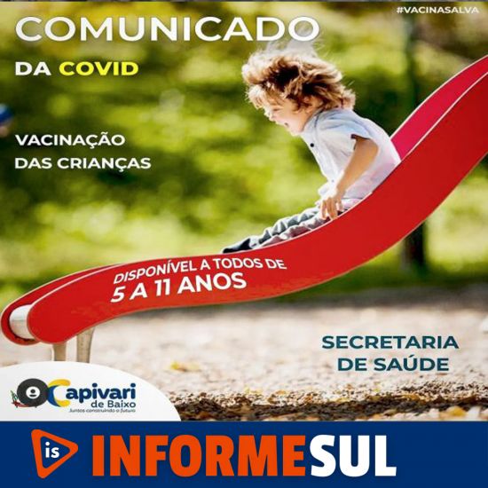 Nas quartas-feiras o horário de vacinação se estende até às 19 horas. Foto: Divulgação A Prefeitura de Capivari de Baixo, por meio da Secretaria Municipal de Saúde (SMS), informa que, a partir de hoje todas as crianças com faixa etária de 5 a 11 anos podem se vacinar contra a Covid-19.