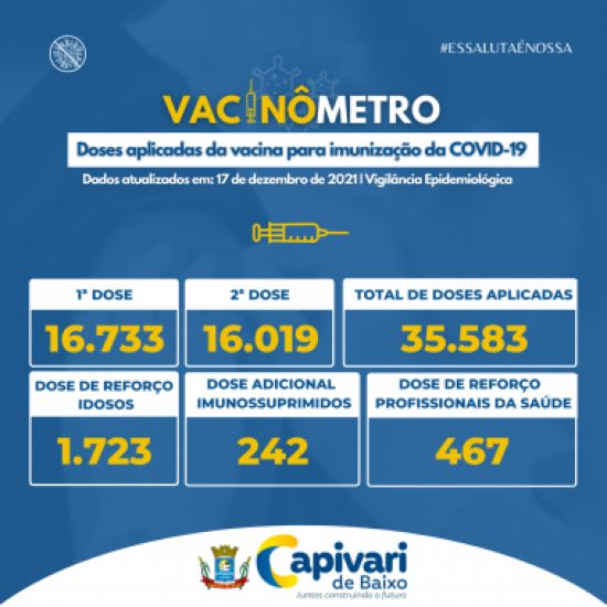Ainda segundo dados do boletim ‘vacinômetro’, 1.723 idosos já foram protegidos com a dose de reforço, mais 467 trabalhadores da saúde e, fechando, 242 moradores imunossuprimidos com a dose adicional.