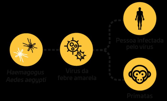 A febre amarela é uma doença infecciosa febril aguda, que pode levar à morte em cerca de uma semana se não for tratada rapidamente. Em ambiente silvestre, os mosquitos dos gêneros Haemagogus e Sabethes transmitem o vírus, e os macacos são os principais hospedeiros. Os casos humanos ocorrem quando uma pessoa não vacinada entra em contato ou mora próximo às matas e é picada por um mosquito contaminado. No ciclo urbano, o vírus é transmitido ao homem pelos mosquitos Aedes aegypti. O Brasil não registra febre amarela urbana desde 1942.