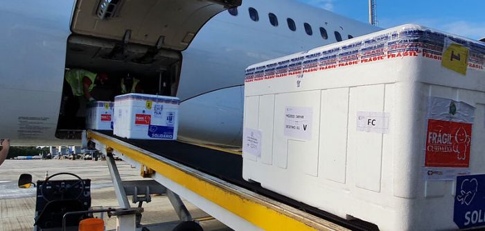 As doses que chegaram no aeroporto de Florianópolis serão enviadas ainda hoje para os municípios, que devem seguir o cronograma de vacinação. Foto: Divulgação/DIVE O Governo de Santa Catarina recebeu agora pouco mais 129.750 doses da vacina contra a Covid-19 para a aplicação da primeira e segunda doses. Os imunizantes chegaram ao aeroporto, em Florianópolis. Depois, foram encaminhados para a Central Estadual de Rede de Frio da Diretoria de Vigilância Epidemiológica (Dive), em São José, para a conferência e organização da logística de distribuição para as 17 centrais regionais.