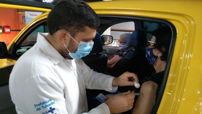 Idosos de 66 anos e pessoas com mais idade, que ainda não tomaram a vacina podem vão receber a imunização hoje. Foto: Marcelo Becker/Decom/PMT Neste sábado das 9 às 13 horas, ocorre mais uma etapa da campanha de vacinação contra a Covid-19, em Tubarão, em sistema drive-thru, no estacionamento do Farol Shopping. Desta vez, a faixa etária contemplada é de 66 anos, em sua primeira dose. A prefeitura ressalta que aquelas pessoas com mais de 66 anos e por algum motivo, perderam as etapas anteriores também podem se vacinar hoje no mesmo local.