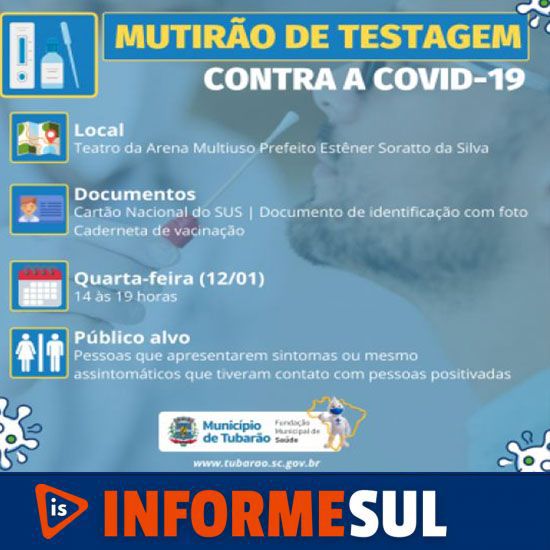 Os testes serão do tipo antígeno e acontecerão no teatro da Arena Multiuso Prefeito Estêner Soratto da Silva, das 14 às 19 horas. As pessoas retirarão a senha para o atendimento e seguirão o procedimento, como resultado do teste saindo em até 20 minutos. Pessoas com sintomas, ainda que leves, ou que tiveram contato com alguém positivo devem comparecer ao mutirão e realizar o teste. “É importante que as pessoas venham ao mutirão com bastante cautela, com paciência, e sem atropelos, uma vez que atenderemos até as 19 horas e existem testes suficientes para todos, não havendo necessidade de correria”, explica o diretor-presidente da FMS Daisson Trevisol.