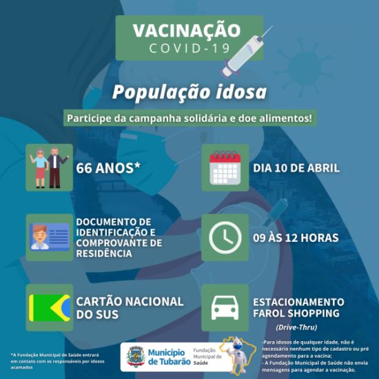 Em tempo, quem tem mais de 66 e perdeu as etapas anteriores também pode comparecer.Desta vez, a faixa etária contemplada é de 66 anos, em sua primeira dose.