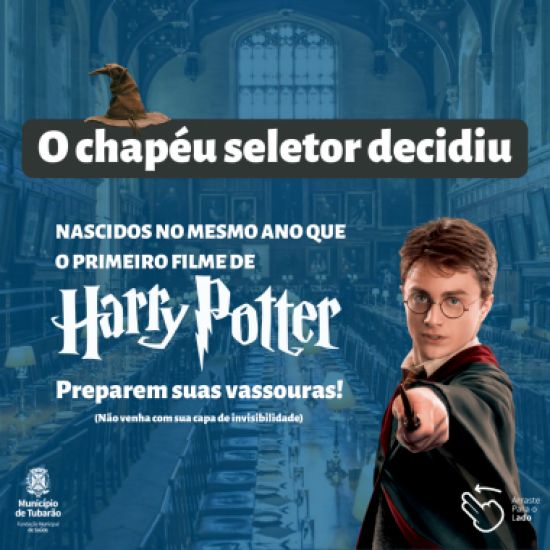 As pessoas que nasceram no ano em que o primeiro filme da saga Harry Potter foi lançado (2001), ou anteriormente, poderão se vacinar. Foto: Divulgação Mais um grupo receberá o imunizante contra a Covid-19 amanhã em Tubarão. Desta vez, as pessoas que nasceram no ano em que o primeiro filme da saga Harry Potter foi lançado (2001), ou anteriormente, poderão se vacinar. A campanha de imunização, para pessoas com 20 anos (ou mais), acontecerá no estacionamento do Farol Shopping, em sistema drive-thru para carros, motos e vassouras, das 17 às 20 horas, com horário diferenciado para pedestres, das 18 às 19 horas.