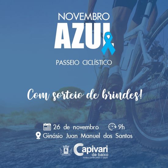 O passeio tem a saída marcada para às 9 horas, em frente ao ginásio municipal Juan Manuel dos Santos e chegada ao Parque Diamante +Energia. Foto: PMCB A Secretaria Municipal da Saúde promove no próximo sábado, 26, sábado, um passeio ciclístico alusivo ao Novembro Azul. O passeio tem a saída marcada para às 9 horas, em frente ao ginásio municipal Juan Manuel dos Santos e chegada ao Parque Diamante +Energia.