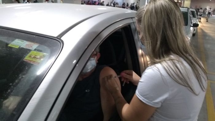 Na quarta-feira, dia 21, uma nova ação de aplicação da segunda dose acontecerá no estacionamento do Farol Shopping, em sistema drive-thru, das 09 às 16 horas.