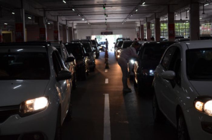 Atenção para os horários: pedestres das 11 às 13 horas e drive-thru das 9 às 13 horas. Foto: Marcelo Becker/Decom/PMT As pessoas com 65 anos de idade que receberão hoje a primeira dose da vacina contra a Covid-19 e que se dirigirão ao Farol Shopping a pé, ou com condução não própria (ônibus, táxis ou carros de aplicativos) deverão ficar atentas ao horário específico para serem atendidas: das 11 às 13 horas.