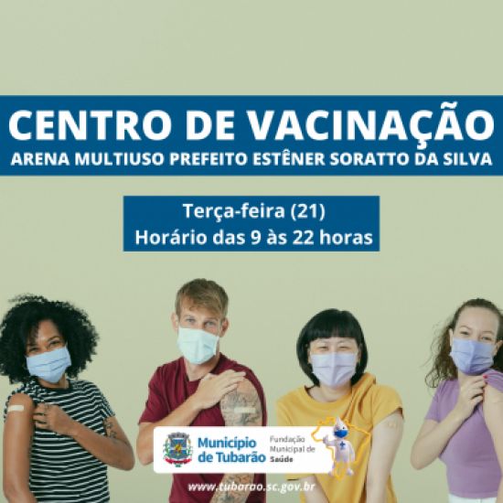 O Centro de Vacinação na Arena Multiuso Prefeito Estêner Soratto da Silva terá horário diferenciado amanhã. A ação acontecerá das 09 às 22 horas. Foto: Divulgação O Centro de Vacinação na Arena Multiuso Prefeito Estêner Soratto da Silva terá horário diferenciado amanhã. A ação acontecerá das 09 às 22 horas. Nos demais dias, a vacinação continua das 09 às 19 horas.