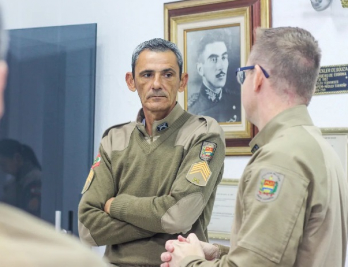 Nesta segunda-feira, 12, o 5⁰ Batalhão de Polícia Militar (BPM) viveu um momento emocionante ao se despedir do 2⁰ Sargento PM Ricardo, que assinou a reserva remunerada. A cerimônia contou com a presença do comandante do batalhão, tenente-coronel PM Paulo Sérgio Pereira de Bona Portão, do subcomandante, major PM Darvi Antônio Savi Neto, do capitão PM Gustavo Ramos May e do capitão PM Alan Pereira Wiggers, que destacaram a carreira exemplar do militar.