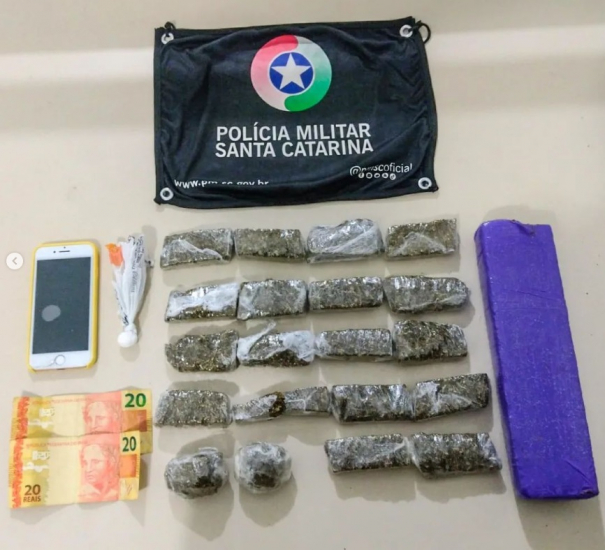 Na sacola que o adolescente segurava, foram encontradas porções de uma substância semelhante à maconha. Além disso, um torrão da mesma substância foi localizado em sua cintura. Diante da situação, foi dada voz de apreensão ao menor, que foi conduzido à Central de Polícia para a realização dos procedimentos legais cabíveis.