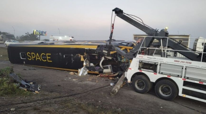 De acordo com informações da CCR ViaCosteira, concessionária responsável pelo trecho, o acidente ocorreu por volta das 4h13, na altura do km 297. Um ônibus de turismo de dois andares saiu da pista e tombou às margens da rodovia.