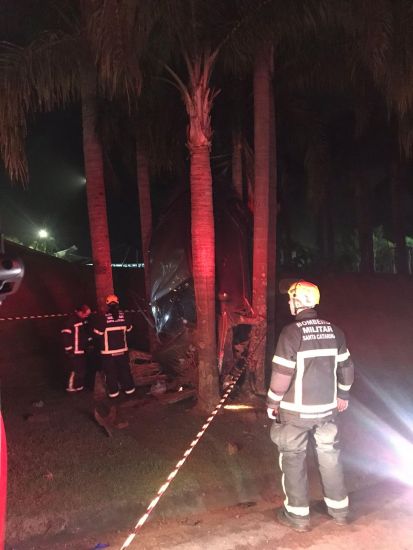Com o impacto veículo Honda Civic, ficou literalmente em pé, com as quatro rodas suspensas, no meio das árvores. Foto: BM Foi registrado um acidente de trânsito por volta das 2h40min, desta sexta-feira, na SC-108, em São Ludgero , próximo a Strawplast. No acidente o veículo saiu da pista e em seguida bayteu contra um conjunto de árvores.