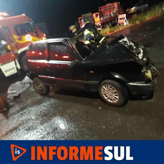 Lateral direita do veículo, próximo ao banco do motorista, ficou completamente destruída — Foto: Corpo de Bombeiros/ Divulgação Uma batida entre um carro e um caminhão provocou a morte de uma criança de 3 anos e deixou um homem gravemente ferido, na BR-470, em Rio do Sul, no Vale do Itajaí. De acordo com o Corpo de Bombeiros, o acidente foi registrado na noite de sexta-feira (14).