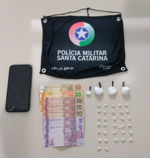 Ao se aproximarem e serem percebidos pelo adolescente, puderam avistar o suspeito arremessando um pacote branco no telhado de uma residência. O adolescente foi abordado pelos policiais e consigo foi encontrado um celular e R$ 110,00 em espécie.
