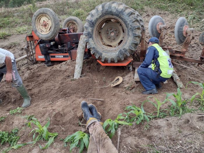 Chegando ao local os bombeiros encontraram a vítima presa entre o trator e o chão, sem os sinais vitais. Segundo familiares a vítima estava dirigindo o trator no morro próximo a residência e ao fazer a curva, o veículo virou caindo sobre a vítima.