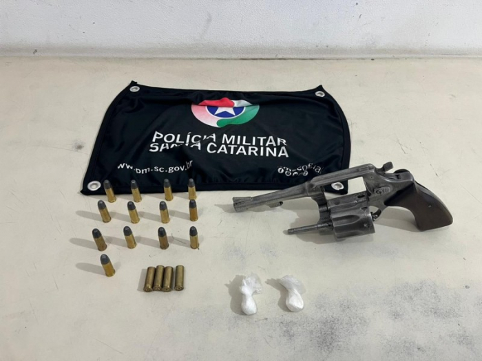 Durante a abordagem no local, a guarnição não encontrou nada com o homem. Em seu carro, no entanto, os policiais localizaram um revólver calibre 32, seis munições intactas e uma bucha de cocaína. No local de trabalho do suspeito, que fica próximo ao bar onde ele estava, os policiais também encontraram outras sete munições do mesmo calibre e mais uma bucha de cocaína.