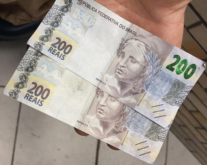 Nenhuma outra nota falsa foi encontrada no interior do automóvel. A cédula apreendida possui características que indicam ser falsa. Para verificar a autenticidade, a equipe também se dirigiu ao posto de combustível, onde utilizou uma caneta de verificação de cédulas, que confirmou a falsidade da nota.