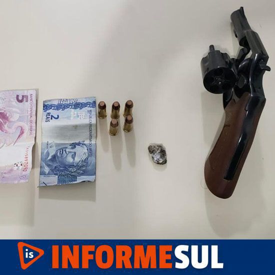 Com o apoio de outra viatura os policiais, em revista pessoal aos abordados foi localizado quatro munições nas vestes de um dos abordados, e no interior do veículo, os policiais conseguiram localizar uma arma de fogo, modelo revólver calibre .38, e uma porção de maconha.