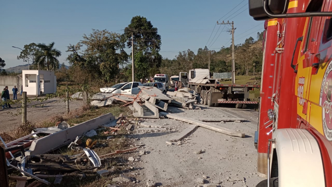 Um caminhão carregado com barras de concreto trafegava por uma curva próxima ao CTG Cidade Azul quando a carga se soltou, atingindo outros veículos. Pelo menos três carros foram envolvidos na ocorrência: uma Saveiro, um Golf e um Sandero, conforme informado pelos bombeiros. O condutor do caminhão não sofreu ferimentos.