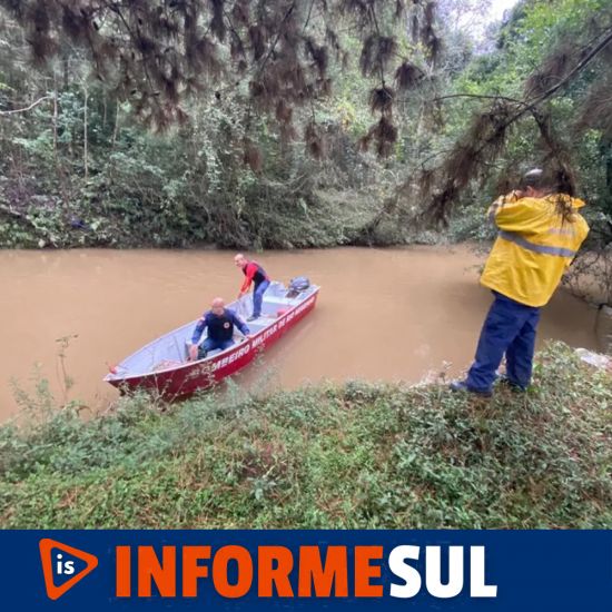As buscas iniciaram no rio depois que o chinelo da criança foi encontrado nas margens do rio. Foto: Bombeiros O Corpo de Bombeiros Militar faz buscas desde domingo (29) por um menino de 5 anos que desapareceu em Rio Negrinho, no Norte de Santa Catarina. Segundo os socorristas, a criança foi vista pela última vez durante a manhã, enquanto brincava com um cão na frente de casa.