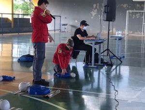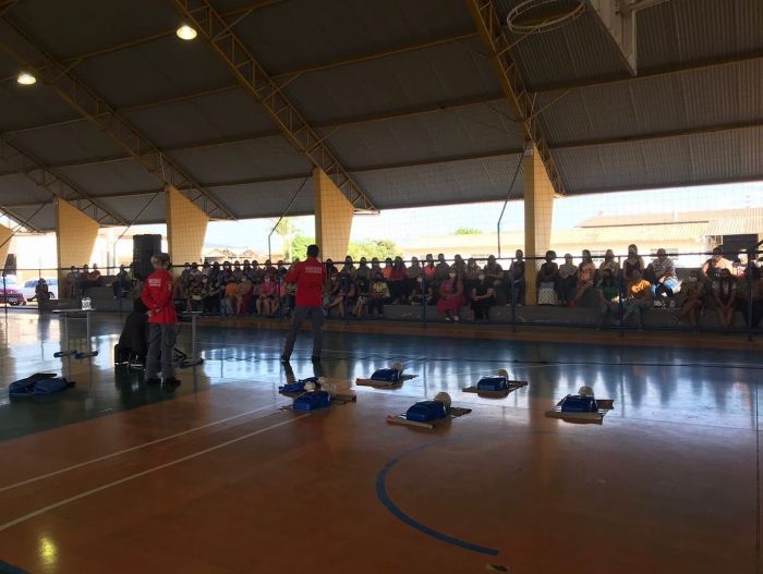 O objetivo foi repassar noções básicas de RCP (ressuscitação cardiopulmonar), OVACE (Obstrução de vias aéreas por corpo estranho), fraturas, hemorragias, crise convulsiva entre outros.