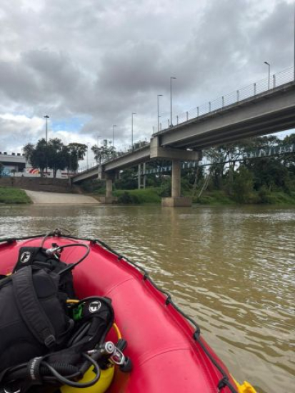 As operações foram encerradas por volta das 17 horas de segunda-feira, sem êxito na localização do corpo. Nesta terça, a guarnição prossegue com os trabalhos, monitorando as margens e utilizando embarcações no trecho entre a passarela e regiões mais abaixo do curso do rio.