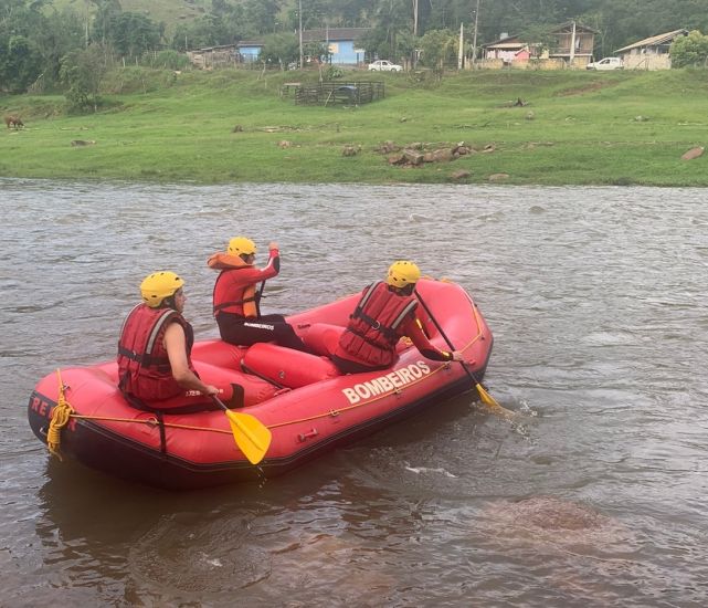 São 7 bombeiros empanhados nas buscas. 3 militares (sendo dois mergulhadores) fazendo buscas no com bote e 4 bombeiros fazendo buscas pelas margens do Rio.