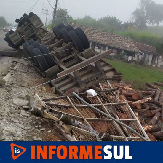 Um motorista ficou ferido após o caminhão que ele conduzia, carregado com toras, tombar na manhã deste sábado, dia 28, em Armazém. O veículo seguia pela Rodovia SC-435, no bairro Bom Jesus, quando por volta das 7h30 o condutor perdeu o controle da direção e sofreu o acidente.