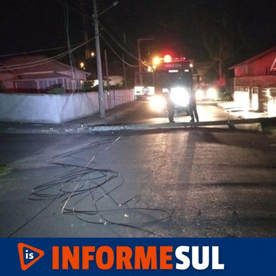 Bombeiros foram acionados porque houve queda de poste de energia no bairro Três de Maio, em Capivari de Baixo.