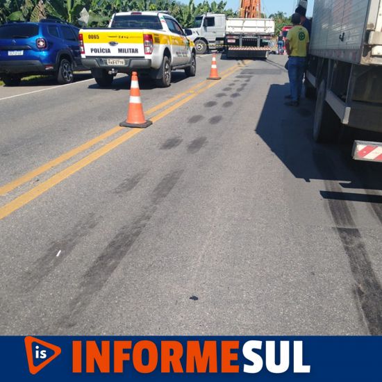 Dois motociclistas morreram após serem atingidos por um caminhão na SC-418 em Joinville, no Norte catarinense, na segunda-feira (17).
