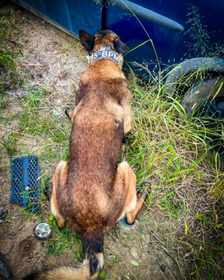 O cão sentiu o odor de droga recente e que haviam retirado do VW Golf, com o rádio dele para fora do painel, constatando que realmente retiraram algo ilícito do local. As drogas foram apreendidas e foi realizado o boletim de ocorrência na localidade.