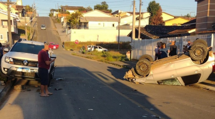 Nesta manhã de terça-feira, dia 27, um terrível acidente abalou a tranquilidade da rua Atilio Fenilli, no bairro Corridas, em Orleans. Uma colisão traseira seguida de capotamento deixou duas pessoas feridas.