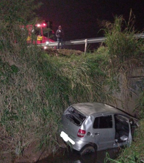Na madrugada deste sábado, por volta das 3h55, um VW Fox com quatro ocupantes capotou e caiu em um córrego na SC-445, no bairro Vila Nova, em Içara. O Corpo de Bombeiros, que prestou atendimento a duas das vítimas, relatou que todos os ocupantes já estavam fora do veículo quando a equipe de resgate chegou ao local.
