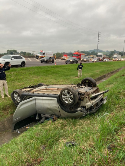 Bombeiros Voluntários de Jaguaruna foram acionados por volta das 16h30min de ontem para atender a um capotamento na BR-101, km 351, na localidade de Morro Azul, em Jaguaruna. O veículo envolvido era um Renault/Sandero com quatro ocupantes, sendo mulheres, além de uma criança.