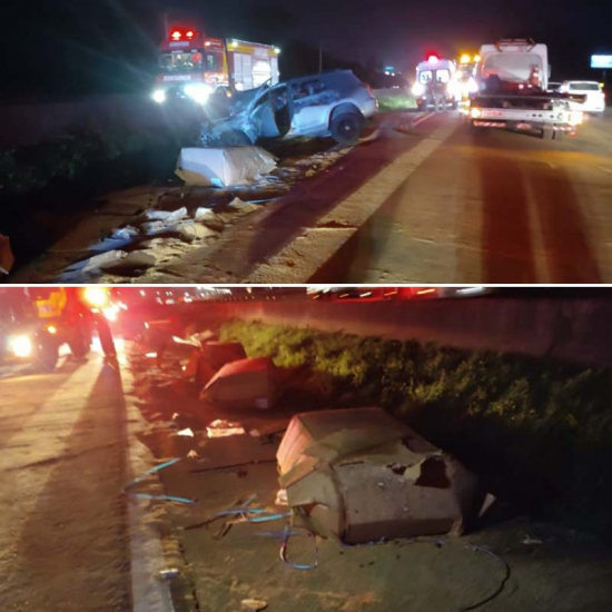 Segundo o Corpo de Bombeiros, os três veículos trafegavam no sentido norte da rodovia. Quando a carga do caminhão se desprendeu, o Corsa colidiu em um dos fardos, parando alguns metros à frente. Em seguida, a Rav 4 também bateu na carga. O motorista perdeu o controle da direção e colidiu contra uma mureta, fazendo o carro pegar fogo.