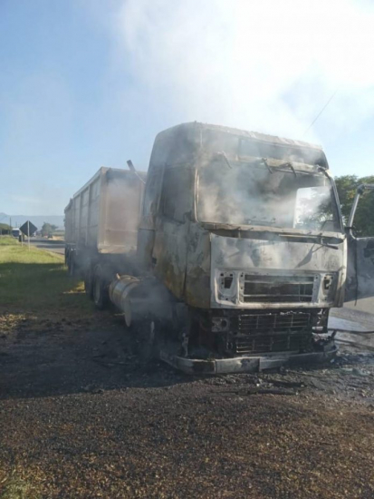 Uma carreta ficou destruída pelas chamas na manhã desta segunda-feira, dia 3, no bairro Limeira, em Meleiro. O Corpo de Bombeiros foi acionado e se deslocou até a SC-447, e confirmou o incêndio no veículo, por volta das 7h40min.