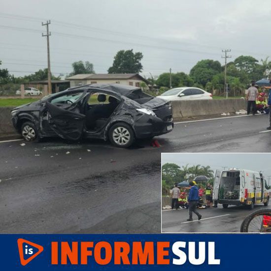 Segundo informou o portal Agora Sul, o motorista do Chevrolet Prisma perdeu o controle ao colidir com o guard rail na pista e capotou. No veículo estava um outro homem e mais uma mulher, que faleceu ainda no local.