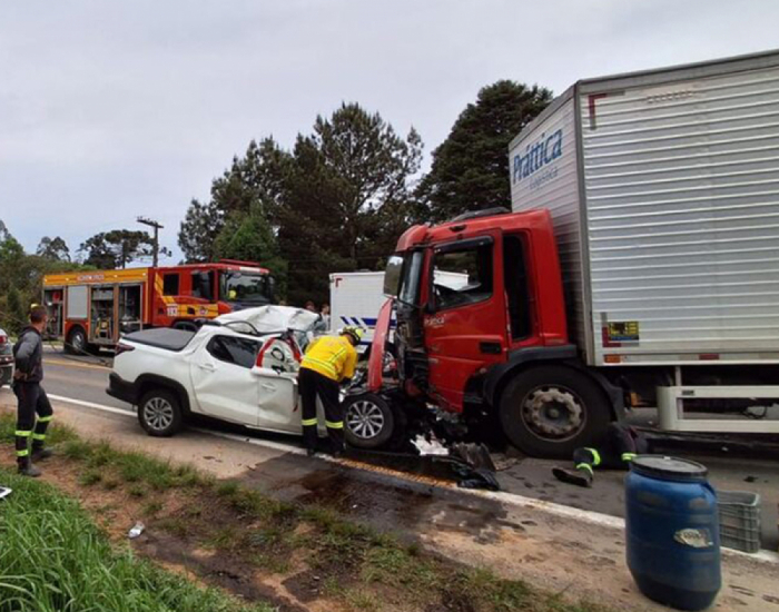 Colisão frontal entre Fiat Strada e caminhão de Garibaldi deixa um morto e outro gravemente ferido no Planalto Norte de SC.