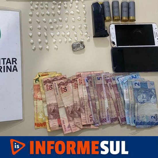 No local onde os suspeitos estariam utilizando para dormir, foram encontrados 02 pacotes fechados contendo 50 pedras de crack ao total, R$ 150,00, quatro munições de espingarda calibre 12 e umcarregador de pistola 9mm.