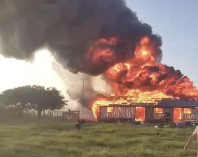 O galpão de uma propriedade na Estrada Geral da Madre, em Laguna, foi completamente destruído por um incêndio no final da tarde deste sábado (8).