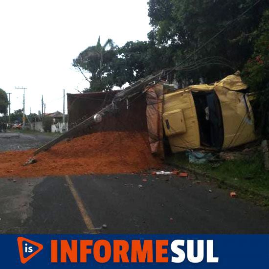 Na tarde de hoje, 09, por volta das 12h30, o Corpo de Bombeiros Militar de Imbituba atendeu uma ocorrência de acidente trânsito, colisão caminhão com um poste, no bairro de Vila Esperança, em Imbituba.